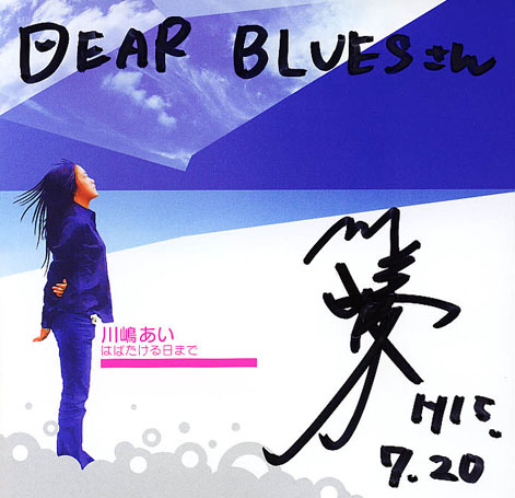 前日に「キディランド」のイベントであいちゃんには会っていた。そこで5thにチャンとサインをもらっていた。しかし… どうしても1年前、ハチ公前であいちゃんと出逢い、そしてファンとして1年共に渋谷公会堂を見つめてきたその原点、7月20日にハチ公前に行かずにはおられず、やっぱり行ってしまった。あいちゃんはいた。1年前と同じ笑顔で…。1年前と同じ様に「天使たちのメロディー」を唄っていた。この日ばかりは仲間に囲まれず一人きりであいちゃんの路上を聴きたかった。ホントは同じ1stにサインを入れてもらうつもりだったけど、2ndに入れてもらった。「渋公まであと1ヶ月、がんばろう!」と、1年前と同じ様にあいちゃんと握手をした。